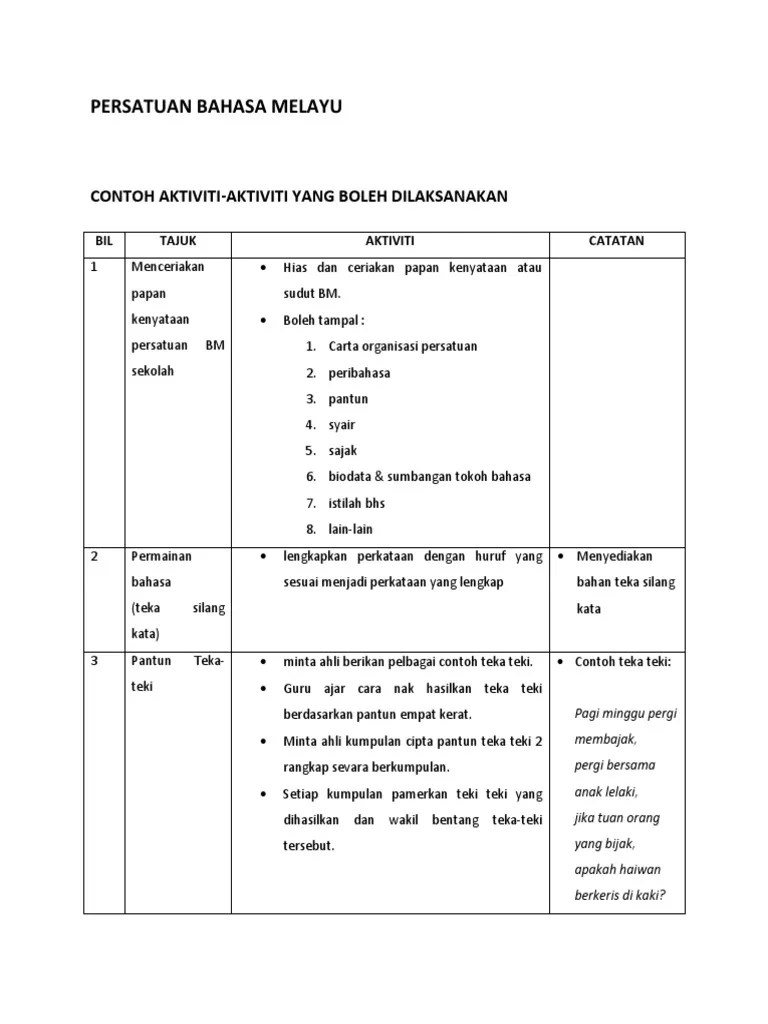 Aktiviti Kelab Bahasa Melayu Sekolah Menengah / Perancangan Aktiviti Persatuan Bahasa Melayu Pdf